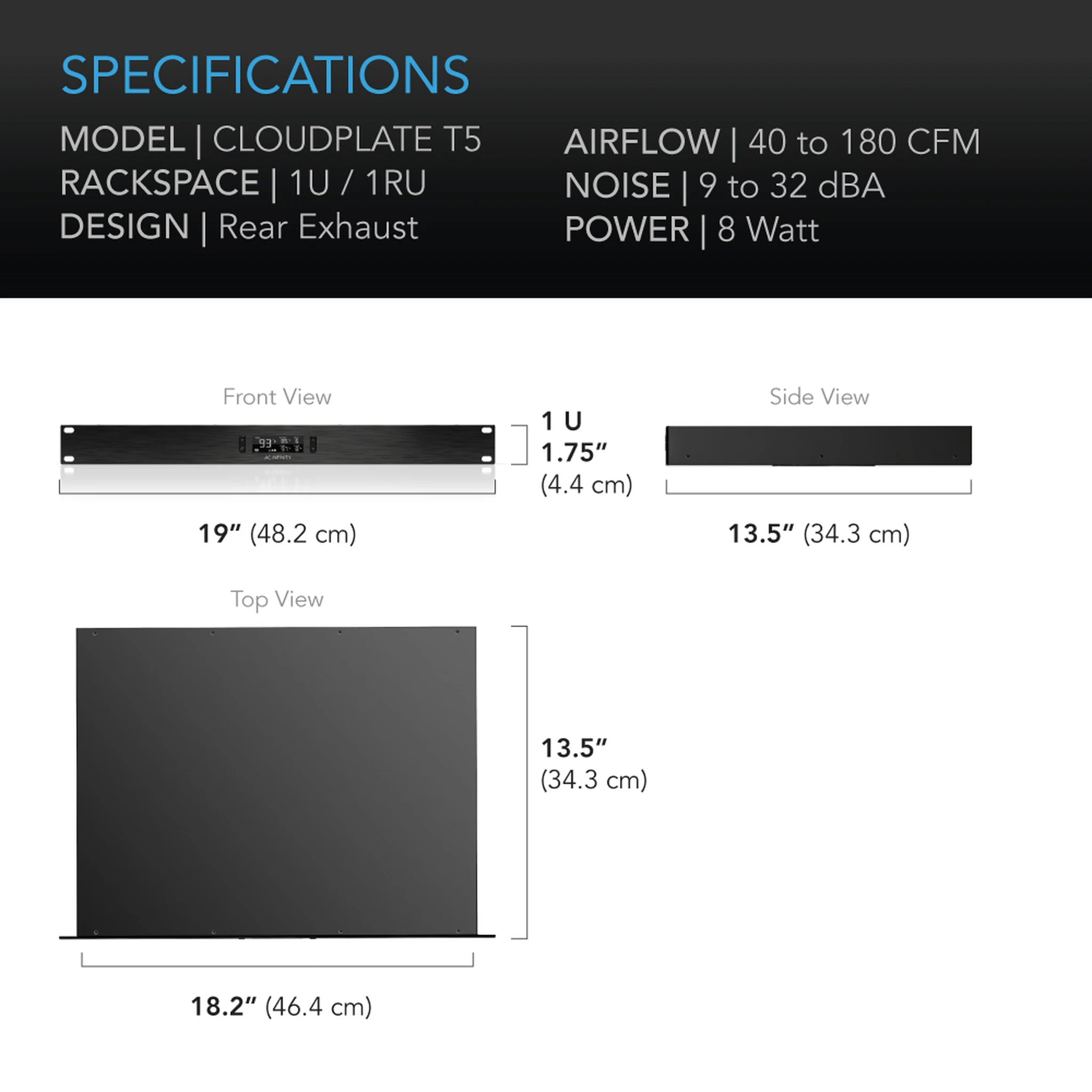 CLOUDPLATE T5 PRO 1U Quiet Rack Cooling Fan System with Rear Exhaust